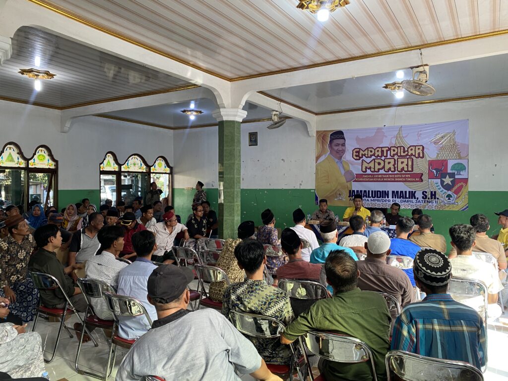 JEPARA – Anggota DPR RI Fraksi Partai Golkar (FPG) dari Dapil Jateng II, Jamaludin Malik, S.H., kembali menunjukkan komitmennya dalam mensosialisasikan nilai-nilai kebangsaan kepada masyarakat. Pada Minggu (18/5/2025), legislator yang akrab disapa JM ini menggelar Sosialisasi 4 Pilar MPR RI di Balai Pertemuan Warga Desa Pecangaan Kulon, Kecamatan Pecangaan, Kabupaten Jepara.